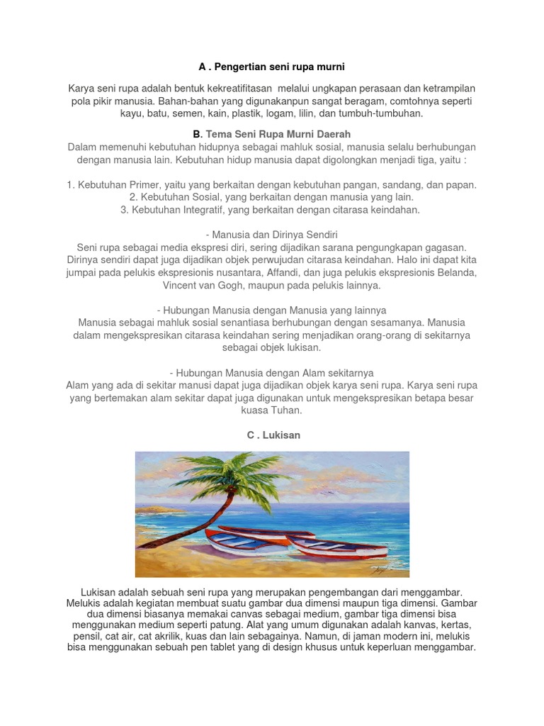 Seni Rupa Murni Tema Wujud Dan Corak Seni Rupa Murni