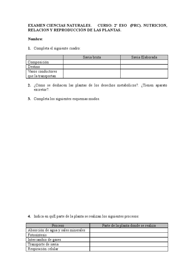Ejercicios Para La Recuperacion De Cc Naturales De
