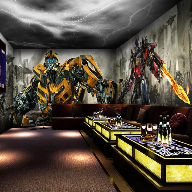 Gratis Shipping3d Transformers Tema Kartun Tiga Dimensi Mural Ruang
