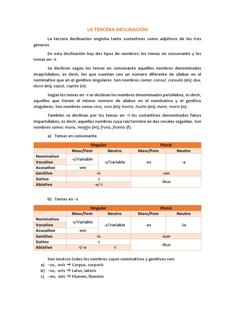 Tercera Declinacion Latina Propiedades Profe De Letras