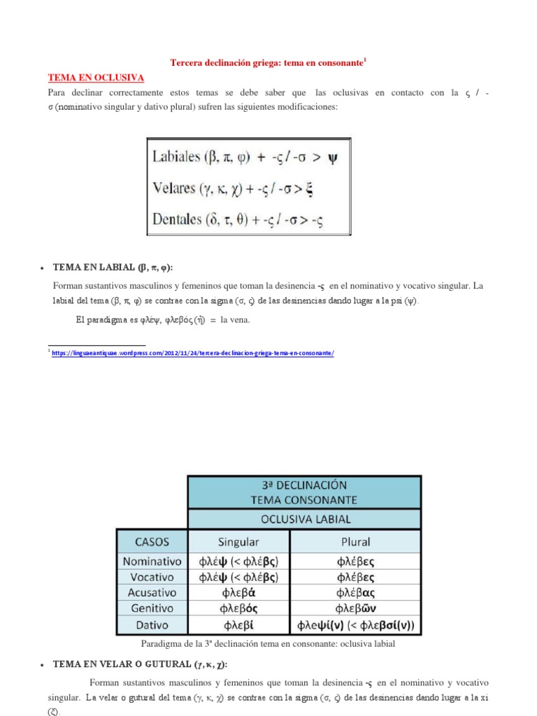 Tercera Declinacion Griega Tema En Consonante Lenguas Clasicas