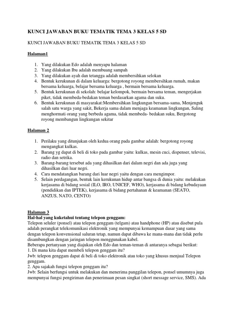 Kunci Jawaban Buku Tematik Tema 3 Kelas 5 Sd
