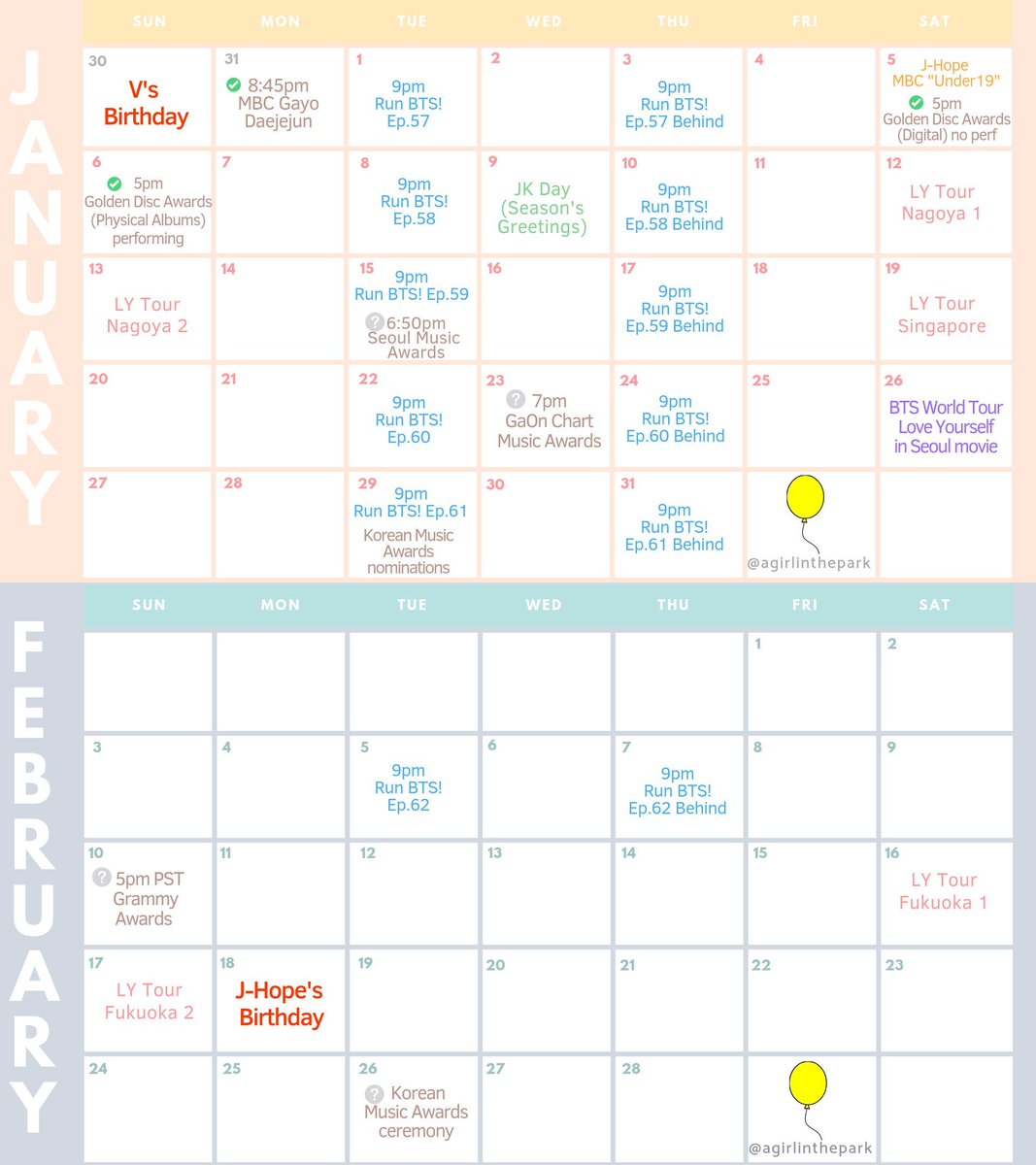 Indomy No Twitter Jadwal Bts Jan Feb 1 1 Run Bts 1 5 J Hope