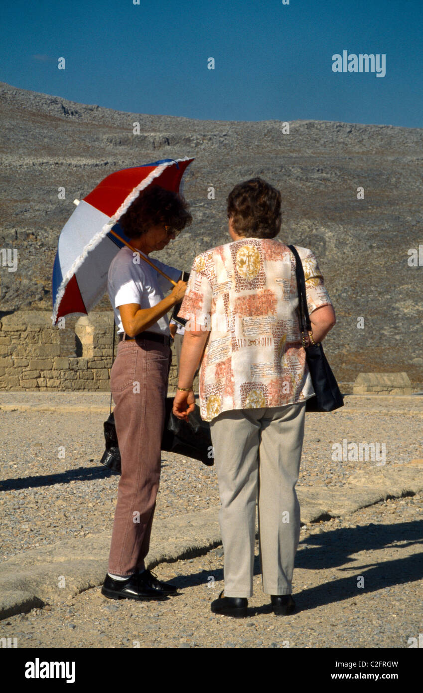 Rhodes Greece Lindos Tour Guide With Umbrella Stock Photo
