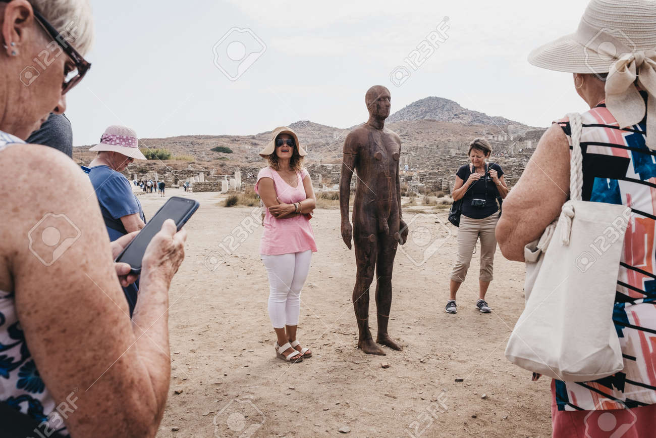 Delos Greece September 20 2019 Tour Guide Talking To A Group