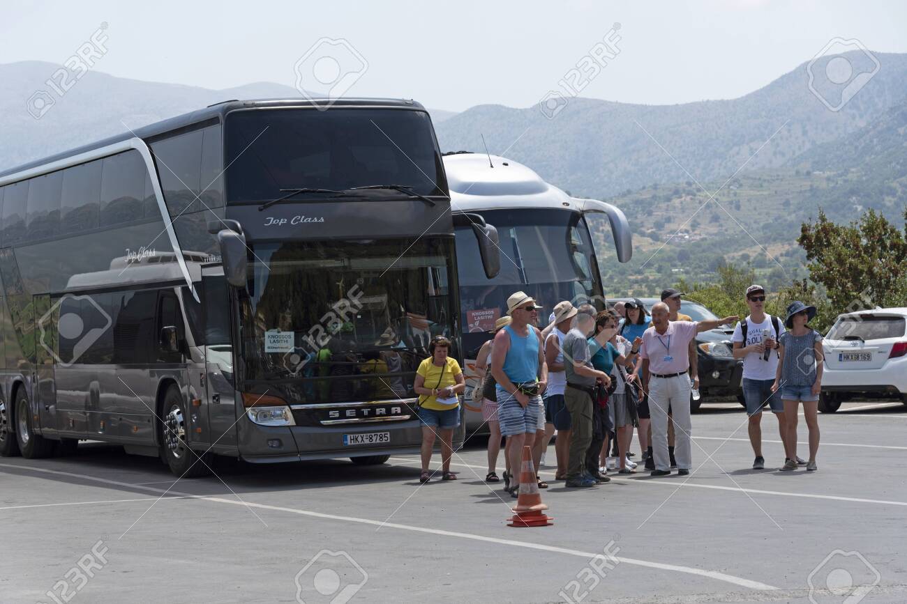 Lassithi Crete Greece June 2019 Tour Guide And A Group Of