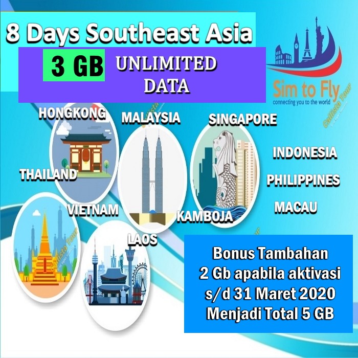 Simcard Asia Tenggara 8 Days 3 Gb 2 Gb Sing Malay Thai