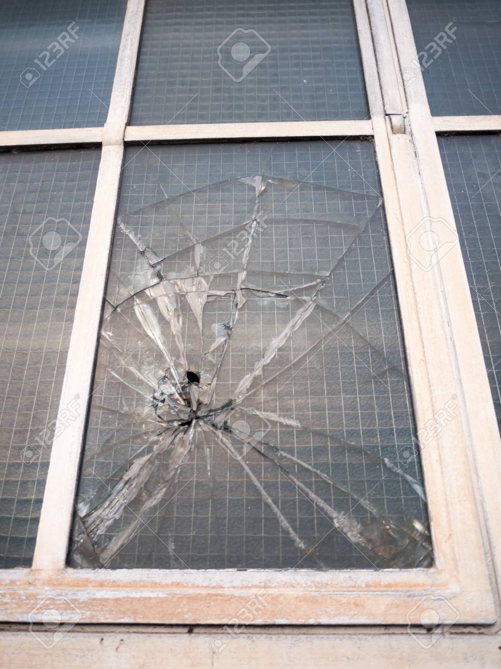Smashed Broken Window Up Close Criminal Damage Vandalism Crime
