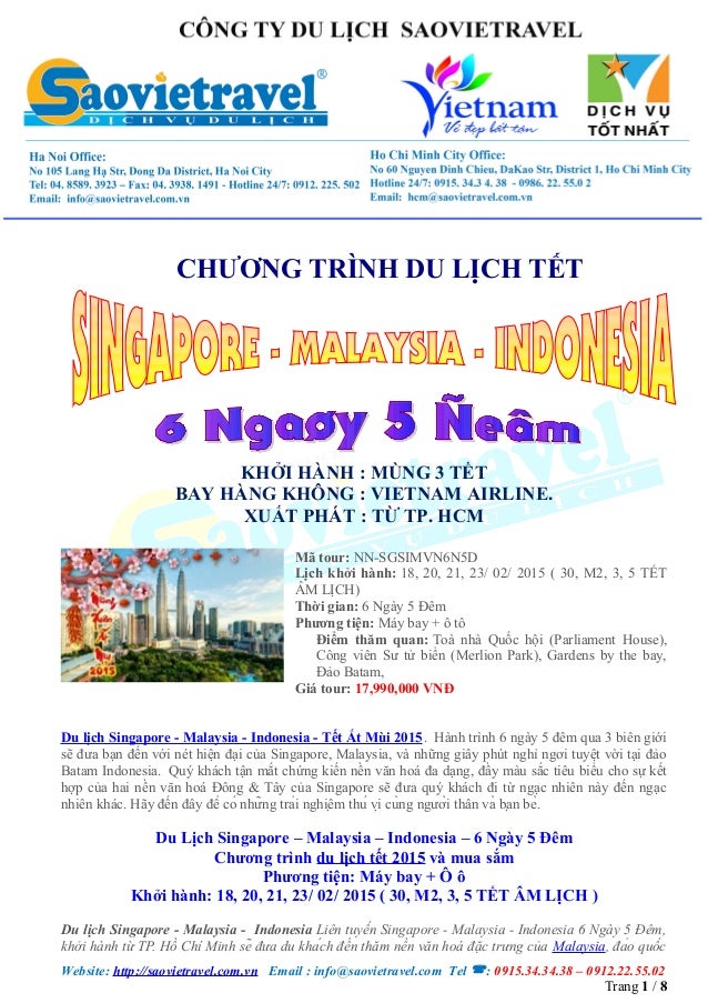 Tour Du Lịch Singapore Malaysia Indonesia Vietravel 2018 Cong Ty