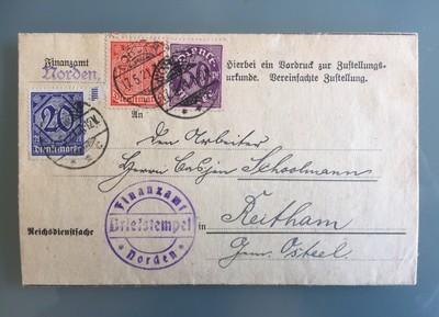 1921 Germany Deutschland Norden Cover Financial Statement Mark