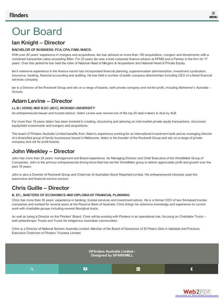 005 Trust Flinders Website C Flinders Australia Limited Our