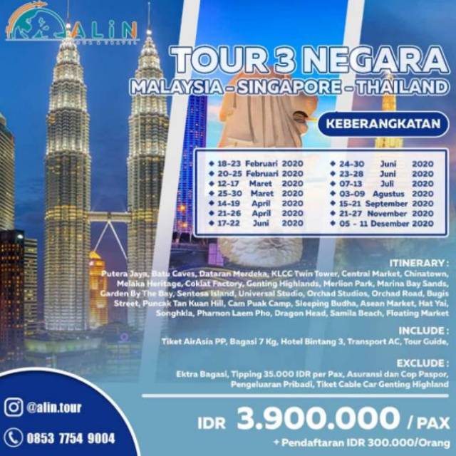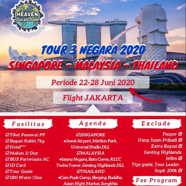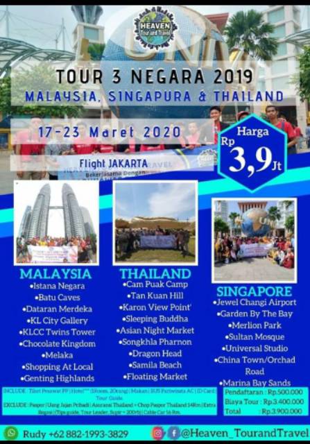 Jual Tour 3 Negara Murah Harga Terbaru 2020
