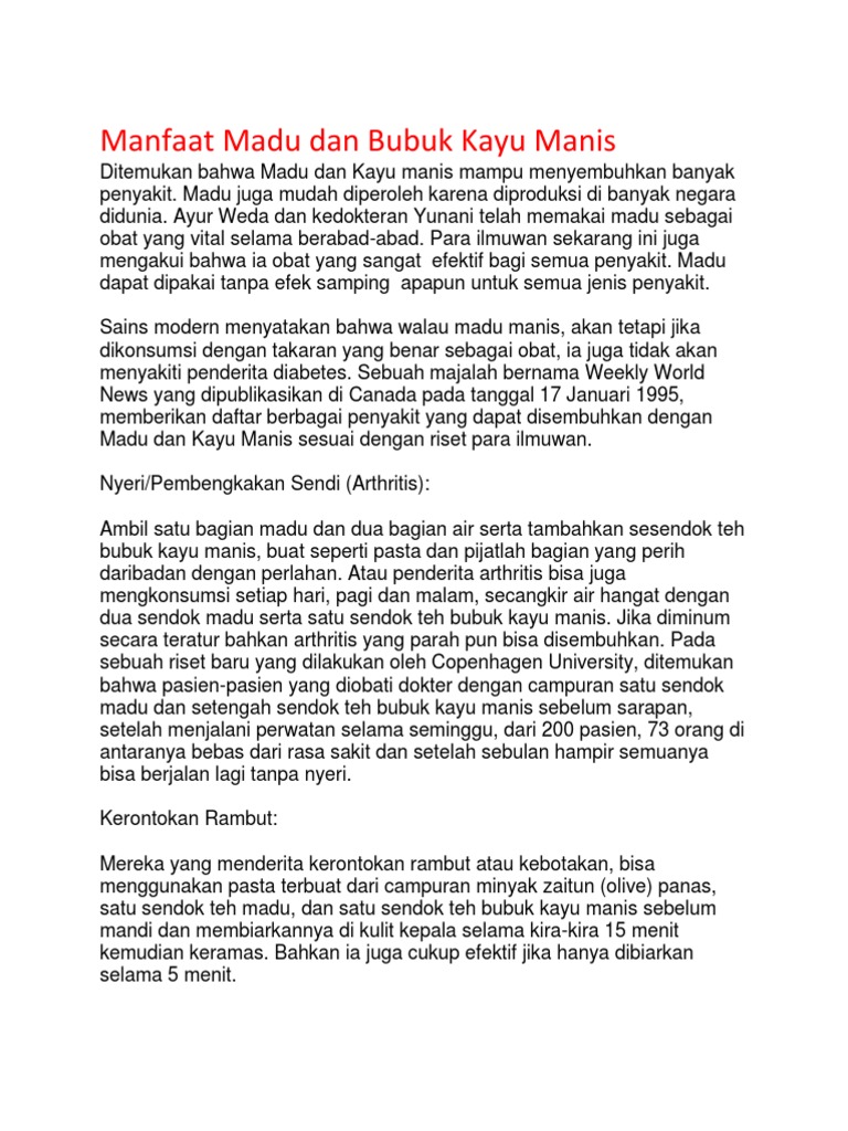 Manfaaat Kombinasi Madu Dan Kayu Manis Medcom Id