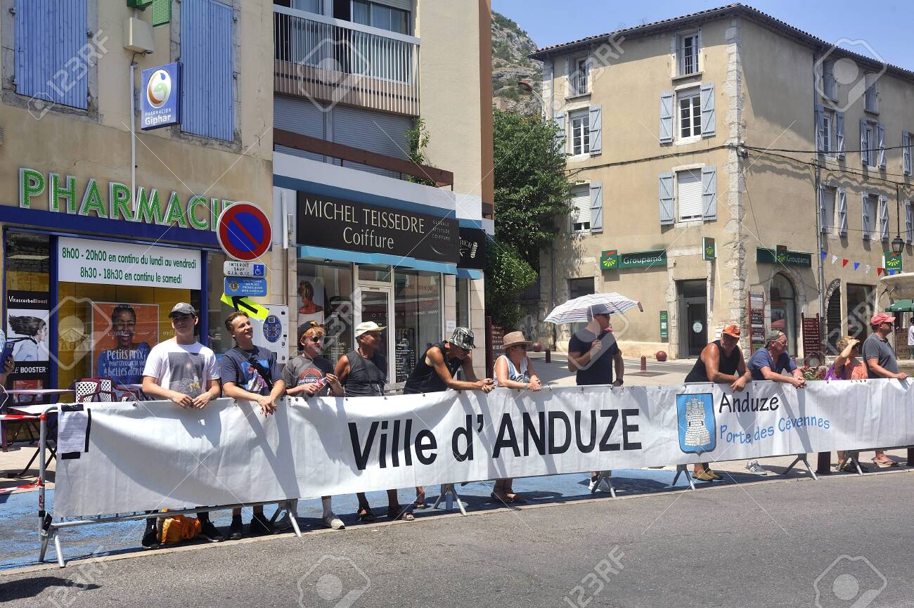 Tour De France Supporters And Their French Flag In Anduze Stock