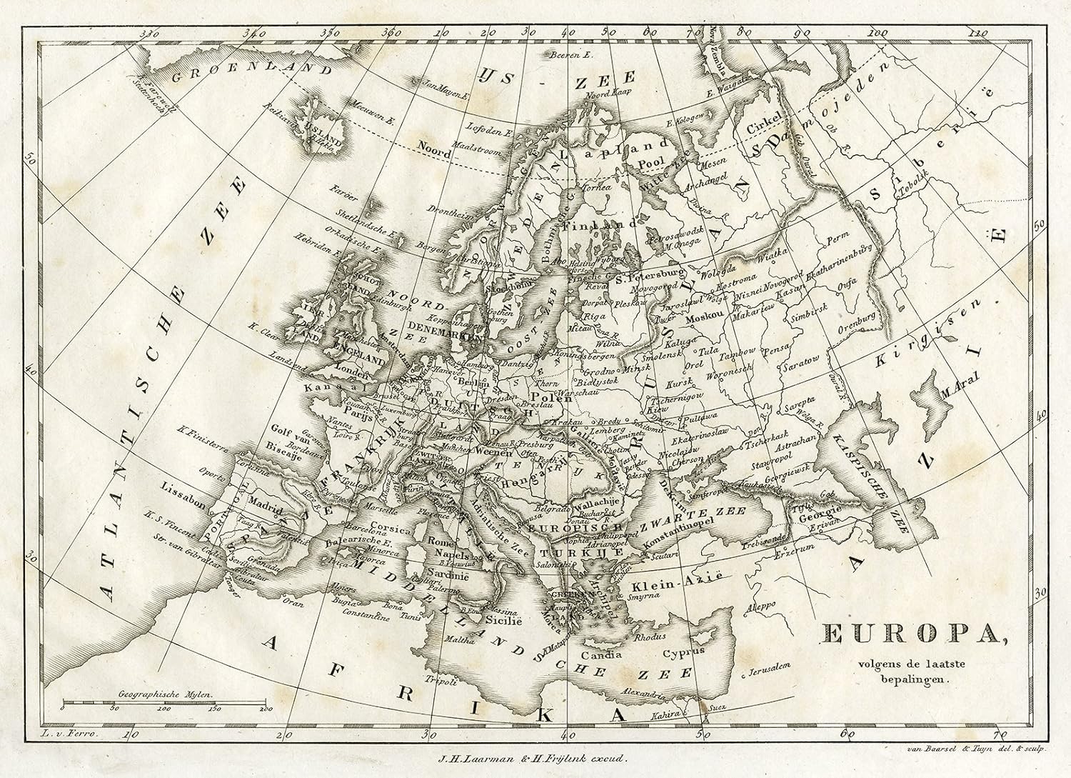 Amazon Com Antique Map Europe Van Baarsel Tuyn 1800 Posters Prints