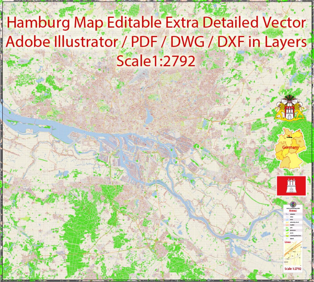 Hamburg Pdf Map Vector Printable Editable Detailed Layered Street Map