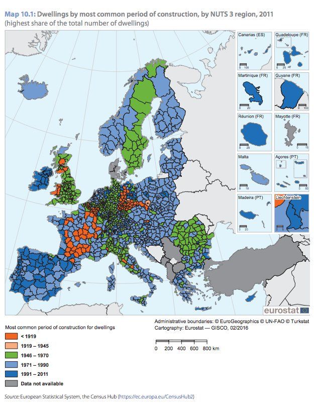 Simon Kuestenmacher On Twitter Map Shows Most Common Age Of Houses Across Europe In The Uk And Germany Most Houses Were Built Directly Post Wwii As Large Parts Of Whole Cities Needed