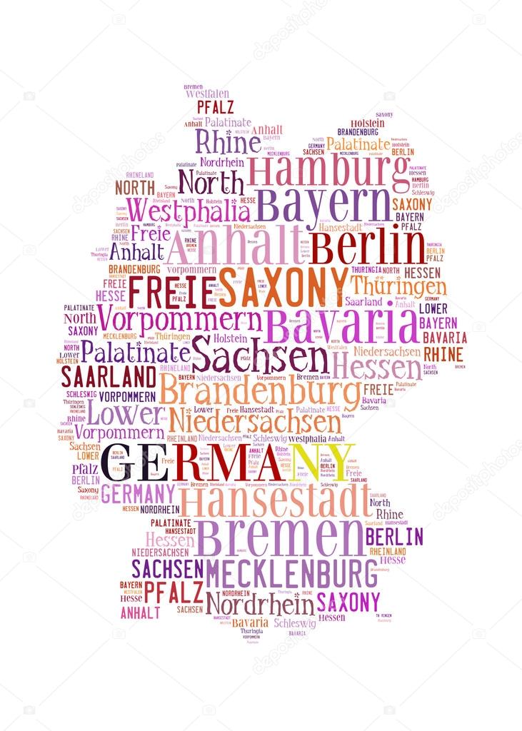 Germany Map And Words Cloud With Larger Cities Stock Photo C Hasrullnizam 18437419