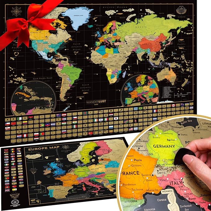 Two Scratch Off Maps Scratch Off World Map Europe Map Deluxe Scratch Off International Posters With Colourful Countries Capitals Cities Landmarks Cartography Travel Gift Made In Europe Amazon Co Uk