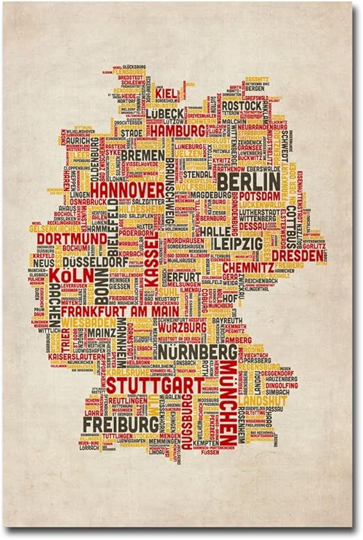 Amazon Com Germany Cities Text Map By Michael Tompsett 30x47 Inch Canvas Wall Art Prints Posters Prints